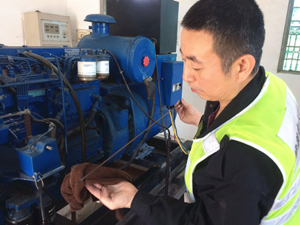 圖為工作人員在檢查發(fā)電機機油