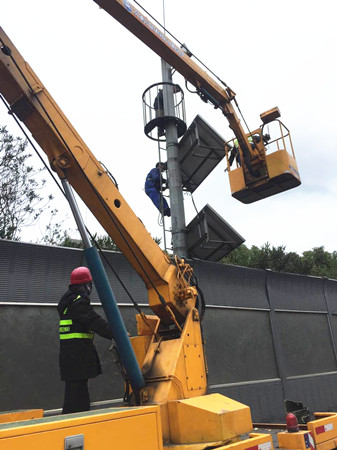 上圖為更換太陽能板現(xiàn)場 為盡快解決這一問題,中心聯(lián)系三家太陽能板供應(yīng)商,通過對性能、價(jià)格、服務(wù)等多方面比較后,最終選定杭州一家單位負(fù)責(zé)此次太陽能板供貨、拆除及安裝工作。1月24日,設(shè)備到貨,但同時(shí)也碰上了今年入冬以來最強(qiáng)冷空氣。可若不及時(shí)更換,勢必會影響春運(yùn)安全行車。 面對困難,中心隊(duì)員并未退縮,每天起早摸黑,帶領(lǐng)安裝人員親赴施工現(xiàn)場,負(fù)責(zé)監(jiān)管和預(yù)警工作。每當(dāng)路面飛駛而過的車輛帶起陣陣寒風(fēng),吹的隊(duì)員瑟瑟發(fā)抖時(shí),施工人員都會勸說隊(duì)員回車上休息,但都被謝絕了,不僅依舊緊盯施工進(jìn)度和質(zhì)量,還協(xié)助他們一起拆卸和搬運(yùn)。在大家共同努力下,所有破損太陽能板在不到3天的時(shí)間里被拆卸和更換,比預(yù)定時(shí)間提前了整整一天。 更換后的新太陽能板最大輸出功率較之前提高了15%,這將大大提升太陽能板對蓄電池充電效率,保證監(jiān)控云臺有效運(yùn)轉(zhuǎn),為高速的安全暢通保駕護(hù)航。 項(xiàng)寅曉