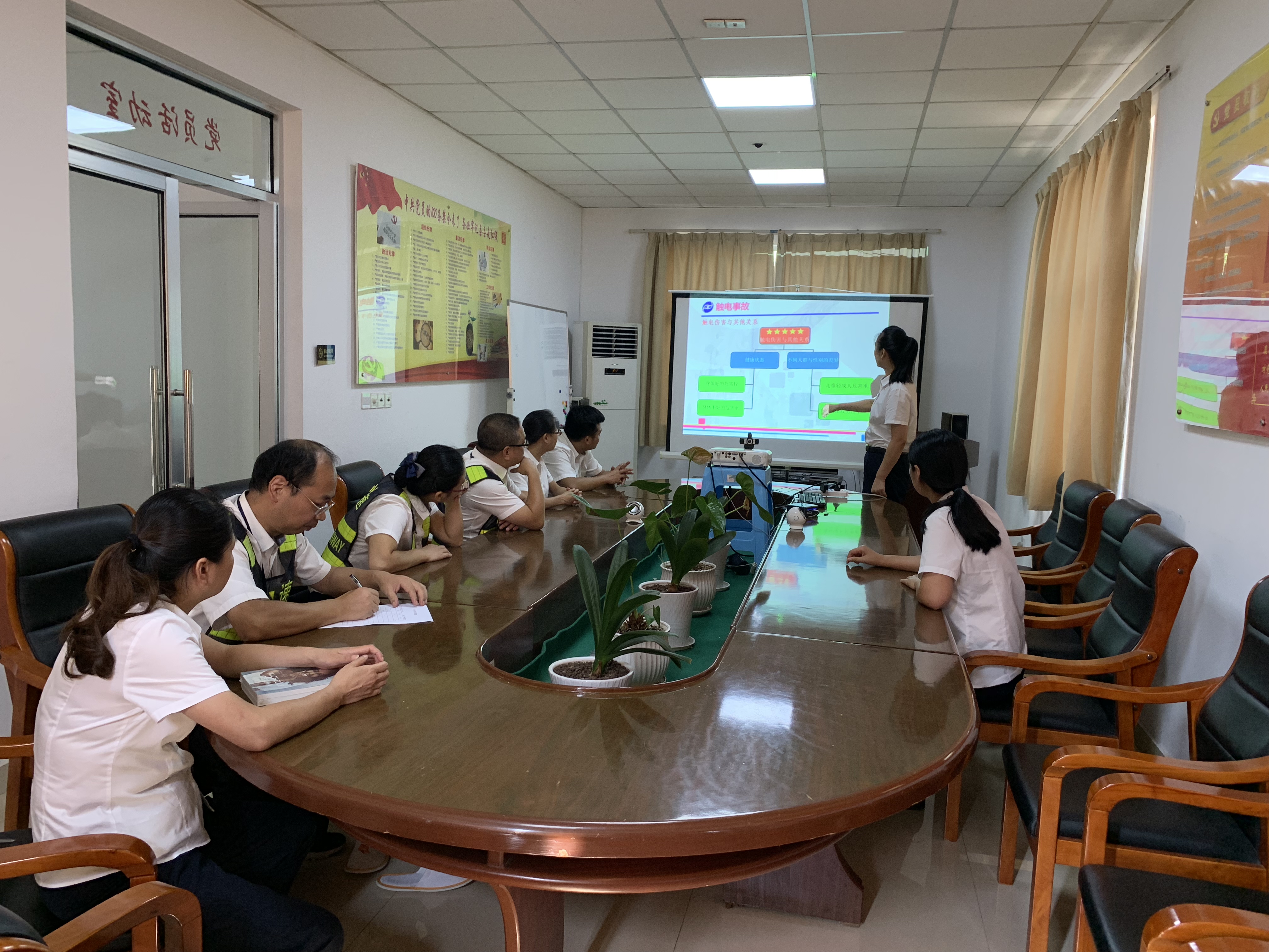 圖為培訓現場 夏季是事故多發季,高溫天氣多變,增加了環境的不確定因素,給生產帶來了一定的安全隱患。本次臨海南收費所主要從夏季多發的觸電、雷電、中毒和中暑等方面來講解安全生產。