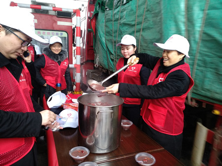 圖為志愿者忙于盛粥 據統計,此次活動,臺州收費所志愿者們送出近兩百份臘八粥、一百多杯紅糖姜茶,并向多輛司乘人員送上印有出入平安的“福”字。臺州收費所作為出入臺州市的西大門,在收費工作中不斷求新求變,在提升文明服務品質的同時,不斷創新延伸服務內容,為司乘人員提供更優質的服務。 鄭瑛芝