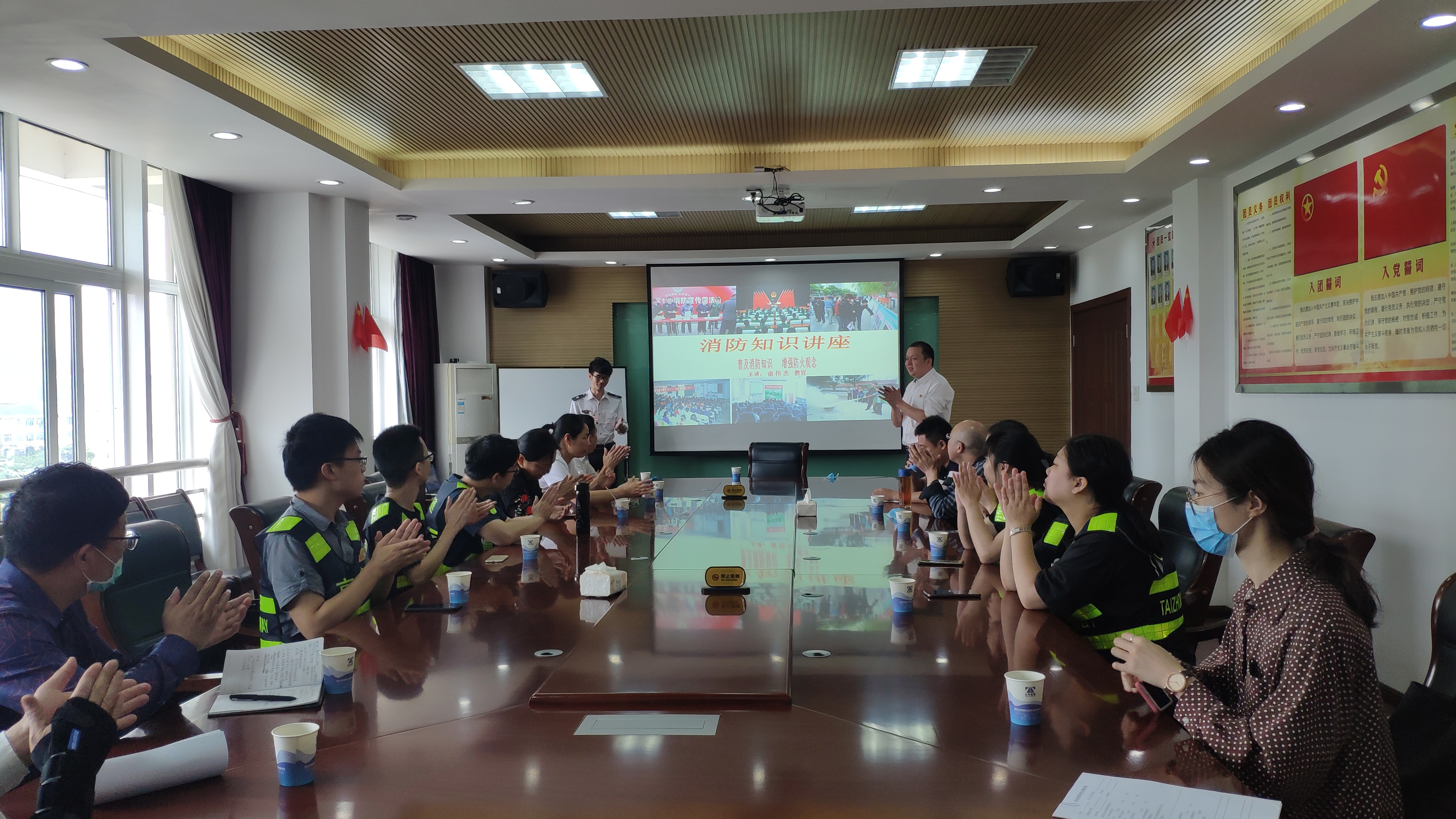 圖為消防安全知識培訓(xùn)現(xiàn)場 培訓(xùn)現(xiàn)場,來自六進消防的俞教官結(jié)合近年來發(fā)生的典型火災(zāi)案例,將消防知識與工作生活緊密聯(lián)系起來,深入淺出地向大家講解了消防知識、火災(zāi)發(fā)生原因、如何滅火及逃生技能等基本常識。俞教官提醒大家在火災(zāi)逃生的過程中必須牢記要用濕毛巾捂住鼻子,防煙熏,還要避開火勢,果斷迅速逃離火場。