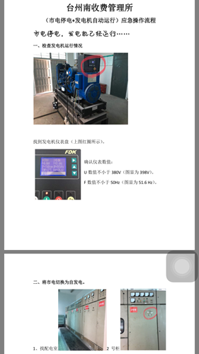 每一位參加學習的人在金小斌的指導下,對整個自發電流程從頭到尾進行了一遍演練,以便掌握基本要領。同時,該所還為員工以圖文并茂的形式準備了停電時發電機啟動和未啟動的兩套操作流程,對每一個操作步驟都作了詳細的注解,清晰明了,簡單易懂。 通過學習,大家以后在碰到臨時停電時不再措手不及。 夏蓮萍