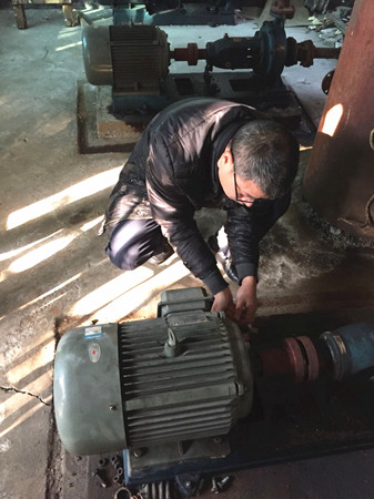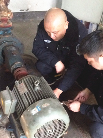 圖為工作人員修理水泵電機現(xiàn)場 因設備比較陳舊,而且原圖紙等資料不全,構造原理無從了解,黃土嶺隧道所所長助理金衛(wèi)軍帶領執(zhí)勤隊,一邊推測,一邊根據(jù)水泵工作原理和電器修理經驗尋找故障點,對設備可能出現(xiàn)的問題進行反復推敲,逐一排查,最終確定為上水位控制繼電器觸點接觸不良造成導電故障。經過對觸點的調整和修復,以及對軸承部位進行加油和電機、水泵平衡重新調節(jié)后,設備之前出現(xiàn)的電機震動、聲音異常現(xiàn)象和無法自動進水等問題被一一解決,消防水泵恢復正常運作。 此次檢修工作不僅及時消除了安全隱患,確保設備隨時處于良好的待命狀態(tài),在檢修的過程中,也為隊員開展了一次良好的技術培訓。 毛譯聆