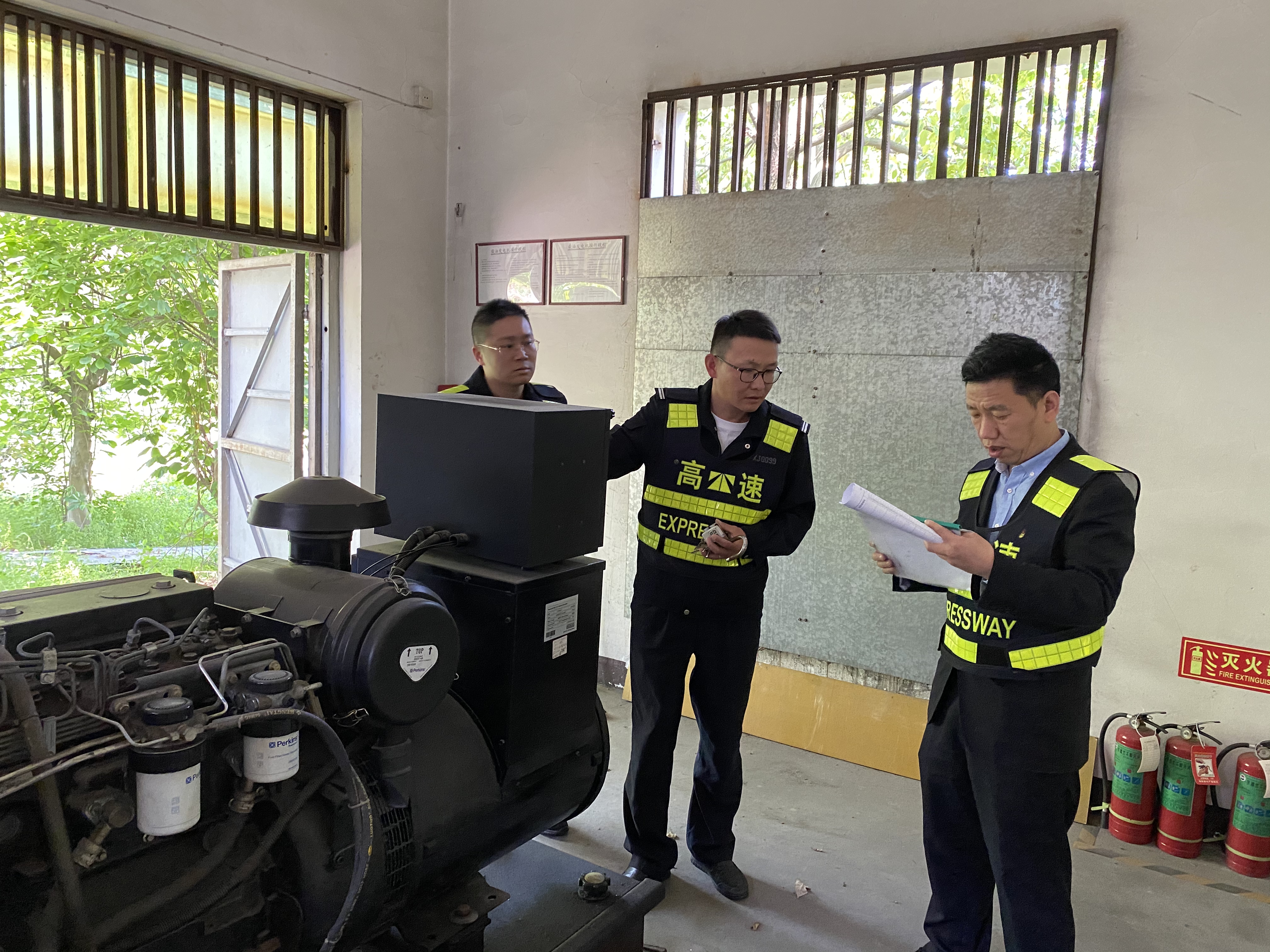 圖為檢查配電柜現(xiàn)場(chǎng) 目前,全國(guó)高速公路仍處于免費(fèi)通行階段,黃土嶺隧道日流量高達(dá)6.3萬(wàn)輛,日趨常態(tài)化的大流量成為隧道所安全管理的最大挑戰(zhàn)。為保障隧道行車安全,道路暢通,該所持續(xù)加強(qiáng)管理,在“五一”節(jié)前,重點(diǎn)對(duì)配電室、發(fā)電房進(jìn)行了線路排查,對(duì)發(fā)電機(jī)進(jìn)行日常維護(hù)與保養(yǎng),保證在遇突發(fā)停電情況時(shí),設(shè)備能夠不斷電運(yùn)行。還對(duì)滅火器、消防泵等應(yīng)急設(shè)備進(jìn)行檢查,確保有效應(yīng)對(duì)突發(fā)事件。以及查看了隧道內(nèi)的照明系統(tǒng)、警示標(biāo)志等設(shè)施和排查房建方面有無(wú)脫落風(fēng)化發(fā)生,確保雨季前的安全生產(chǎn)。