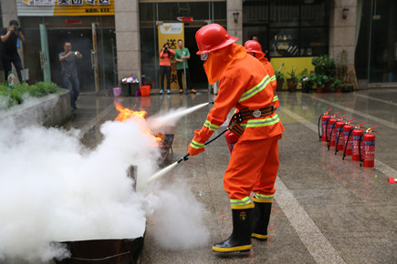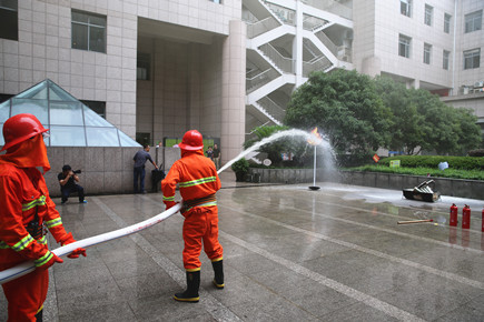 上圖為滅火模擬演練現(xiàn)場(chǎng)