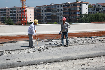 鐘志偉是8#立交項目部的現場管理人員?!澳壳罢谑┕さ氖?#立交主線橋的橋面鋪裝層,這個班組是月初進場,按照預計工期,月底前必須完成所有橋面鋪裝?!辩娭緜フf,時間緊、任務重,三伏天也要連軸轉。