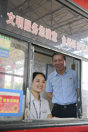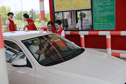 圖為公司副董事長、總經理張建平慰問崗亭當班收費員