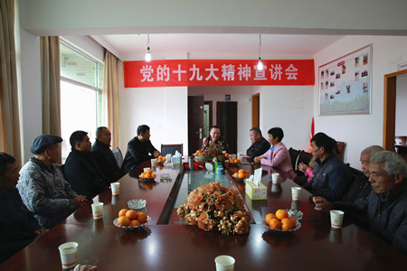 12月1日上午,公司黨委副書記、總經理張建平在監察室負責人的陪同下,驅車拐過山路十八彎,來到黃巖區上垟鄉潘山頭村宣講十九大精神。