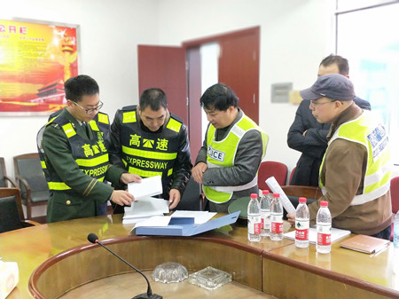 圖為檢查組一行在大溪嶺隧道所檢查消防內業(yè)資料