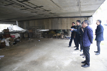 圖為集團副董事長、總經理張建平在院橋互通下檢查