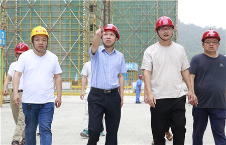 圖為集團總經理張建平向工程團隊了解項目建設情況