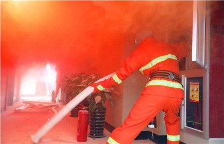 “消防演練現在開始”隨著現場總指揮項同富的一聲令下,在刺耳的警笛聲和濃煙中,天和大廈全體人員在樓層疏散引導員的指引下迅速向一樓撤離。