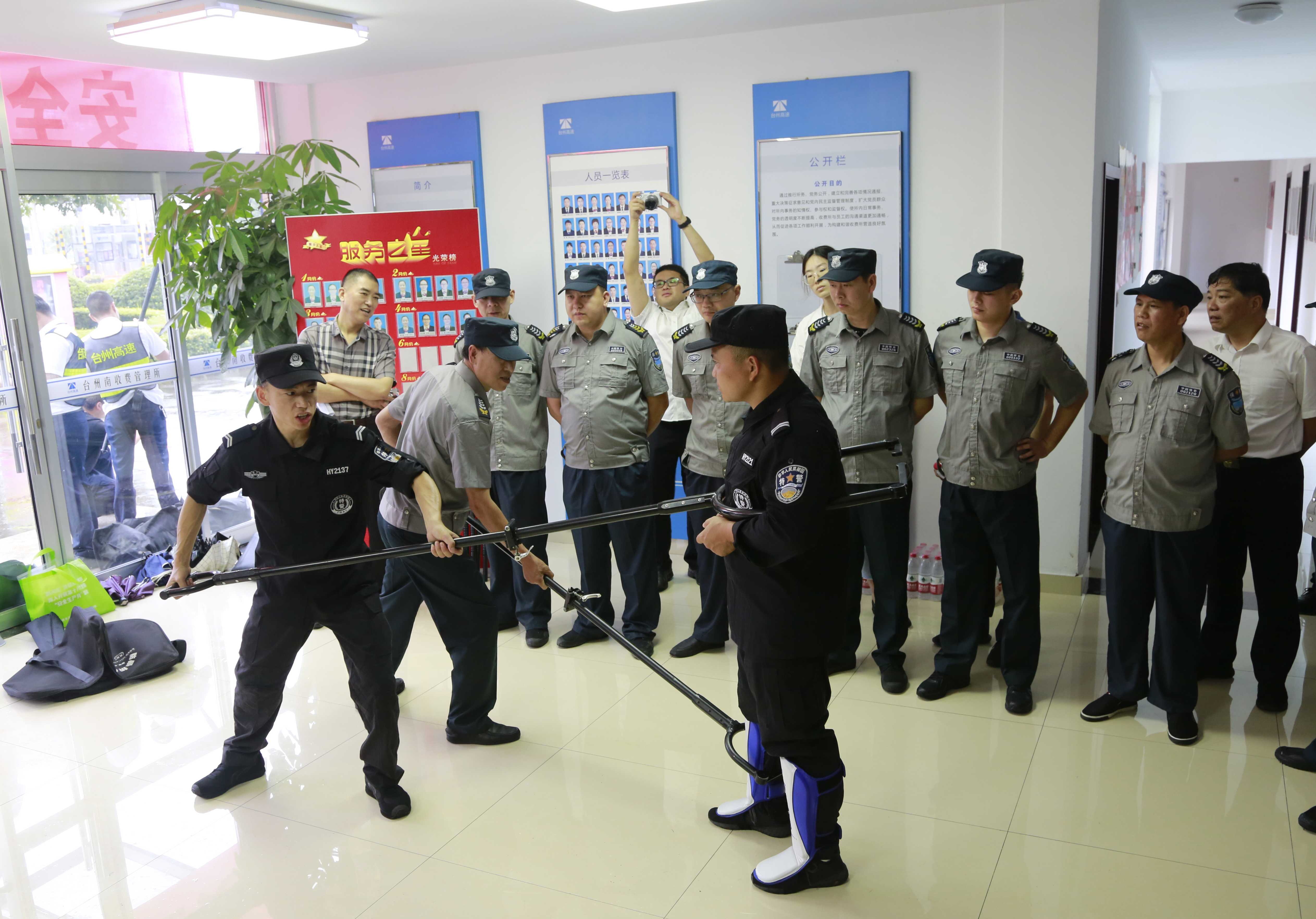 圖為物業(yè)人員現(xiàn)場練習(xí)器械使用