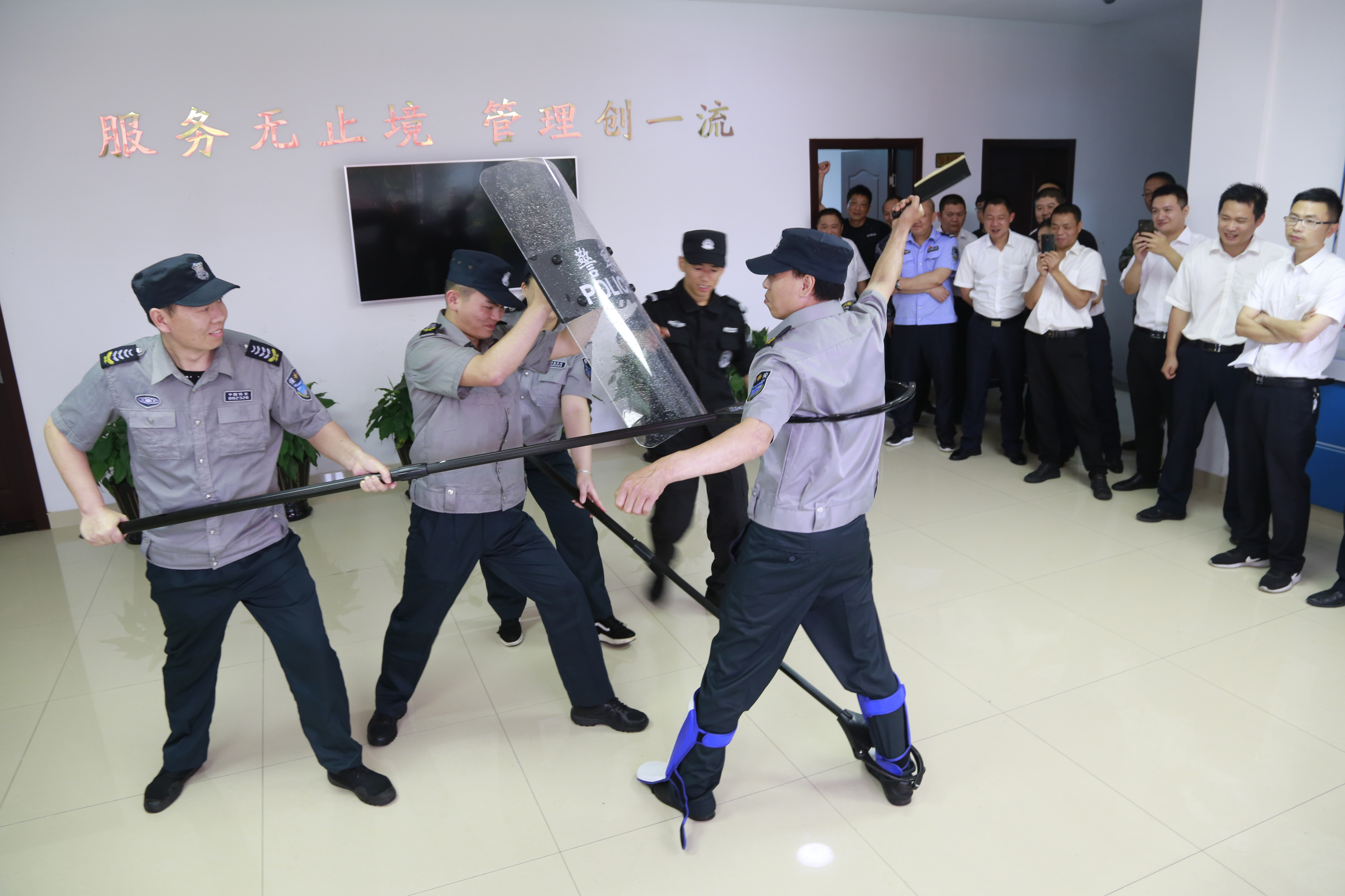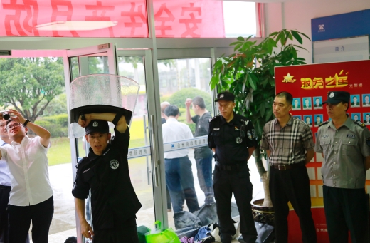 演練開始前,盧尚明對(duì)防爆盾牌、防爆鋼叉、抓捕器、警棍等各類防爆器材的功能和使用方法進(jìn)行一一講解,并示范操作,以及帶領(lǐng)大樓浙師大印象物業(yè)人員現(xiàn)場練習(xí)器械使用。