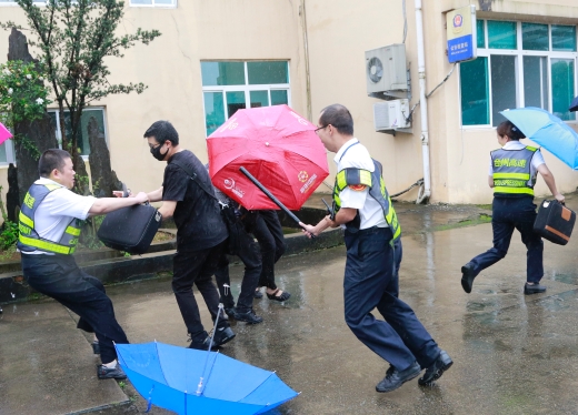隨后,多名參演員工冒雨模擬收費(fèi)崗?fù)ず土嘘?duì)下崗遭遇“歹徒”搶劫的情景開展防盜搶演練?,F(xiàn)場,2名蒙面歹徒執(zhí)仿真刀、軟棍威脅收費(fèi)員交出現(xiàn)金,危機(jī)之中,收費(fèi)站立即啟動(dòng)應(yīng)急處置預(yù)案并報(bào)警求助,收費(fèi)員有效與歹徒周旋,應(yīng)急處置組人員迅速攜鋼叉、橡膠棒、勞動(dòng)工具等赴現(xiàn)場支援,值班領(lǐng)導(dǎo)、收費(fèi)班長、監(jiān)控員合力協(xié)作應(yīng)對(duì)歹徒,防盜搶演練順利結(jié)束。