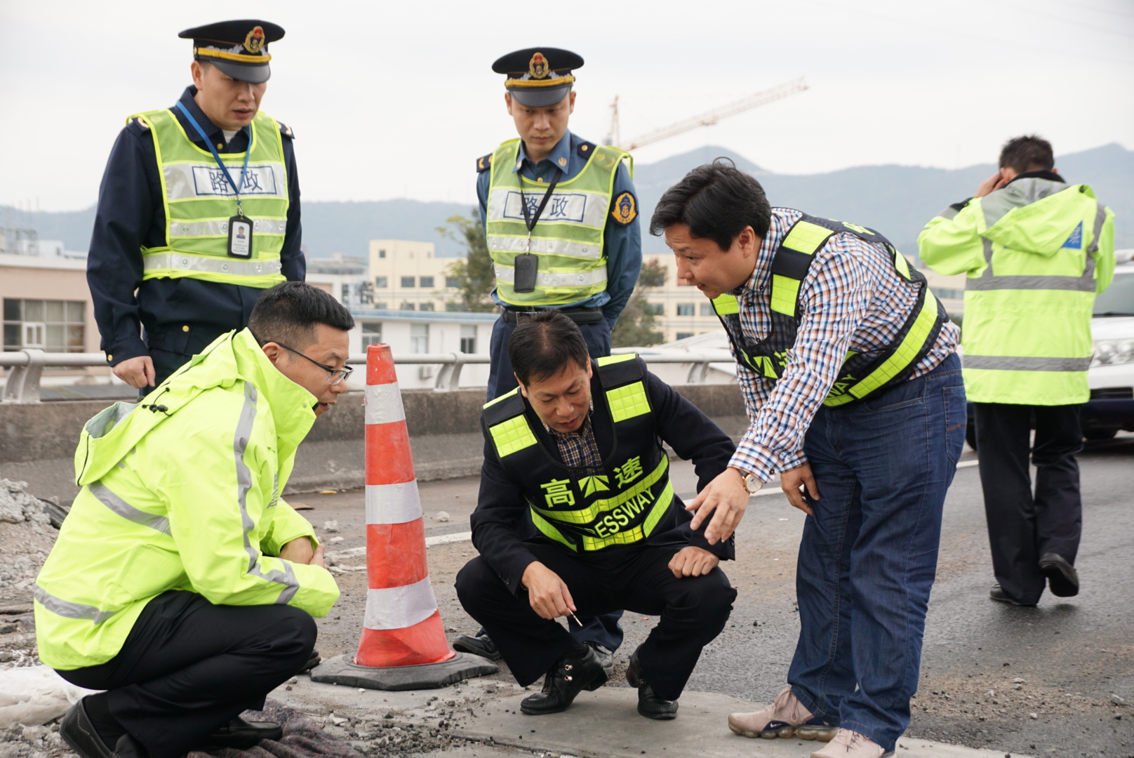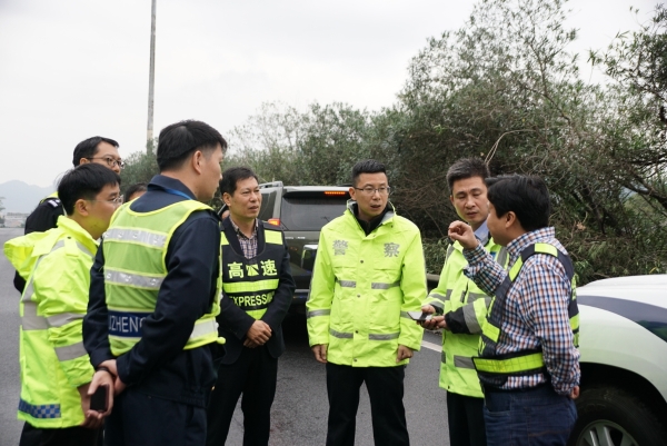 檢查組現(xiàn)場勘查 在各交通管控點、分流點,檢查組對一直24小時堅守在崗位上的工作人員表示慰問,并希望他們能繼續(xù)保持昂揚的斗志,直到完成這項重點工程。