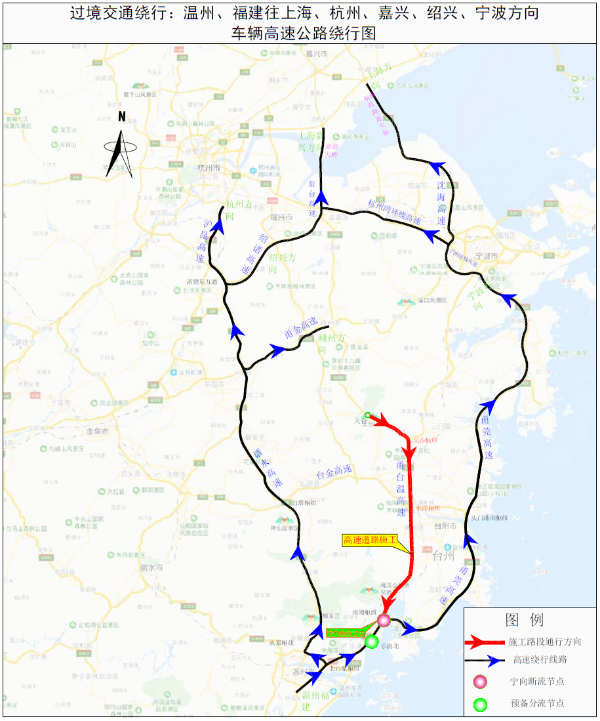 受本次施工影響,福建、溫州、臺(tái)州往寧波、杭州、上海等方向的車(chē)輛需要提前選擇出行時(shí)間和繞行路線。具體繞行線路建議如下: