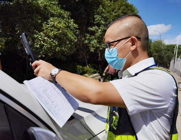 這是征費(fèi)四班班長鄭星和駕駛員的對話,他手持iPad,不停地在屏幕上滑動著、查詢著。天氣炎熱,大貨車開車時(shí)較為顛簸,3M膠軟化黏不牢,ETC設(shè)備容易脫落。ETC設(shè)備一旦掉落,則會提示“標(biāo)簽已失效”,就無法正常工作,不能實(shí)現(xiàn)不停車出入高速公路ETC車道,給來往司機(jī)和收費(fèi)人員增添了很多麻煩。為全力配合ETC服務(wù)需要,鄭星冒著酷暑高溫,不厭其煩地幫著司乘人員解決問題,一天下來工作服濕了又干,干了又濕,他就是臺州高速上的最美堅(jiān)守者。