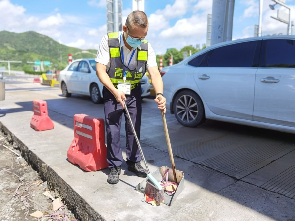 烈日灼燒著大地,高速兩邊的樹葉都被曬得打了卷,悶熱的空氣讓人喘不過氣來,在溫嶺西收費(fèi)站,不少司乘人員在過站時(shí),隨手將食品的塑料袋、煙頭、塑料瓶等垃圾丟棄在收費(fèi)站出口處,班長陳軍見到隨時(shí)清掃路面,保持收費(fèi)區(qū)域衛(wèi)生干凈整潔。彎腰、清掃、起運(yùn),看似簡單的一組動作,陳軍每天要重復(fù)幾十次,衣服一天不知要被汗?jié)穸嗌俦椋?/span>但他堅(jiān)持以良好的形象展示臺州高速的精神風(fēng)貌。他就是臺州高速上的最美堅(jiān)守者。