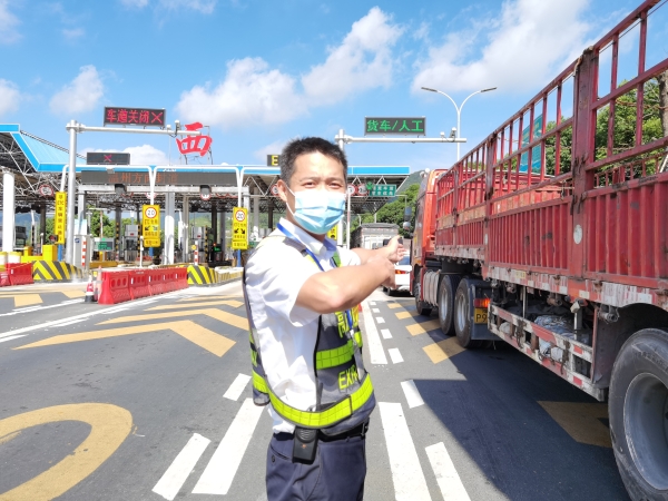 “師傅,慢點(diǎn),注意后方來車,往左一點(diǎn)。”溫嶺西收費(fèi)站入口處,一位身高一米七五左右的男同志正在維護(hù)著交通秩序。他就是征費(fèi)三班班長李寧??崾罡邷?zé)o法消磨他的斗志,揮汗如雨對他而言已是家常便飯。溫嶺西收費(fèi)站車流量大,貨車多,當(dāng)遇到三超車輛或者節(jié)假日的時(shí)候,入口處就會排成長龍。七八月份的太陽十分毒辣,經(jīng)過一天的高溫,收費(fèi)站入口的馬路上熱浪滾滾,人站在外面不到5分鐘就會汗流浹背。但為保持入口交通的安全暢通,李寧不斷做著各種不同的手勢,指揮著過往的車輛通行,絲毫顧不得擦拭順著臉頰流下來的汗水。他就是臺州高速上的最美堅(jiān)守者。