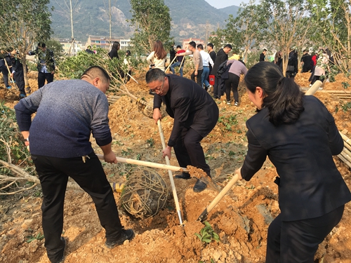 圖為植樹(shù)現(xiàn)場(chǎng) 3月13日上午,臺(tái)州高速房產(chǎn)黨支部開(kāi)展“守護(hù)青山碧水”主題黨日活動(dòng),組織黨員干部到黃巖“兩山”綠色基地(江心嶼苗圃公園)植樹(shù),為臺(tái)州大地再添新綠。