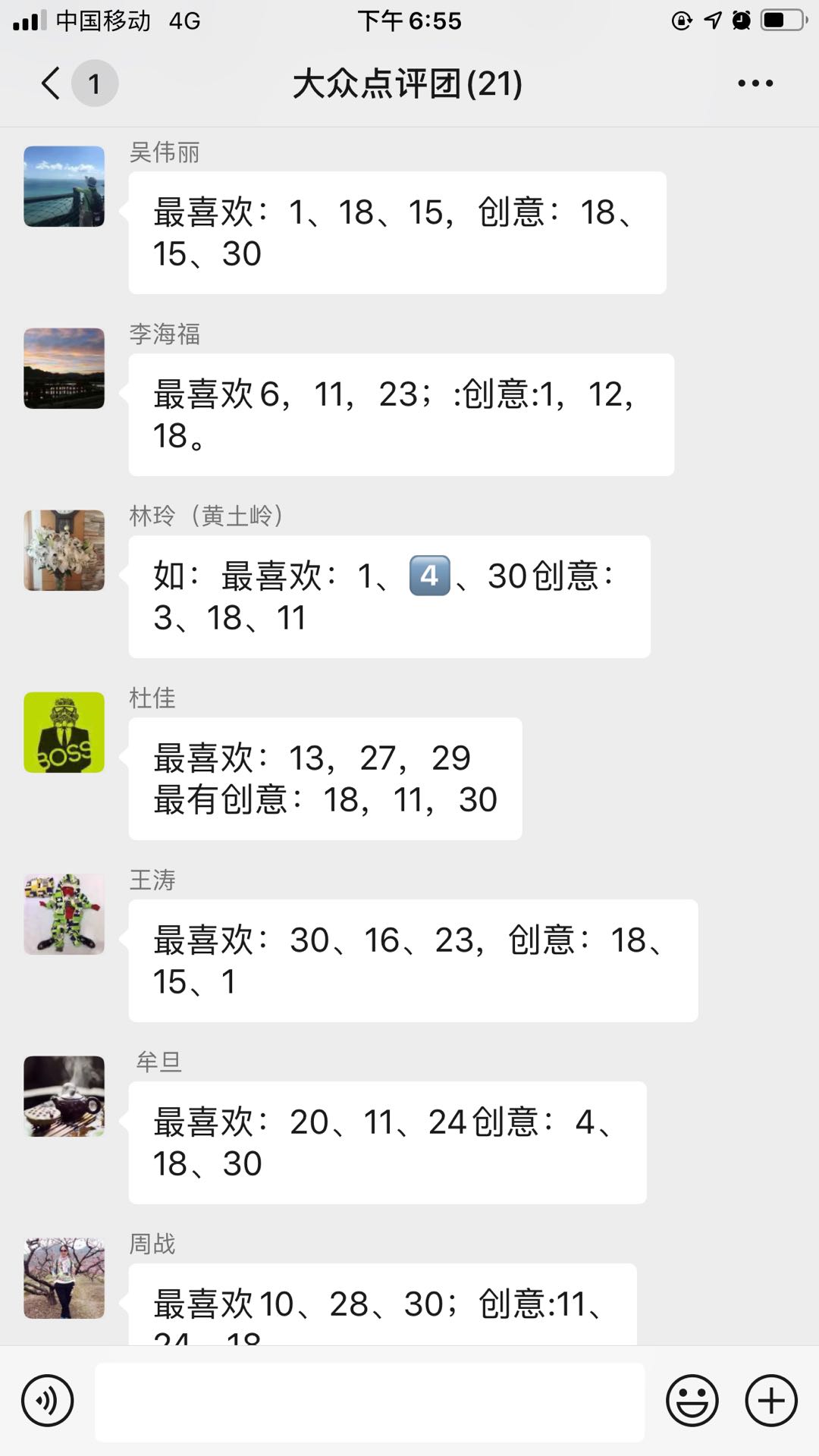 最后經過大眾投票,評選出了鄭蔚的《干鍋雞》、鄭瑛芝的《墨魚汁酸菜餃子和日式茶碗蒸》、胡正熙的《蔥油拌面》為“最佳人氣獎”,羅嵐的《小豬飯團》、鄭瑛芝的《墨魚汁酸菜餃子和日式茶碗蒸》、鄭蔚的《玫瑰蛋糕卷》為“最佳創意獎”。